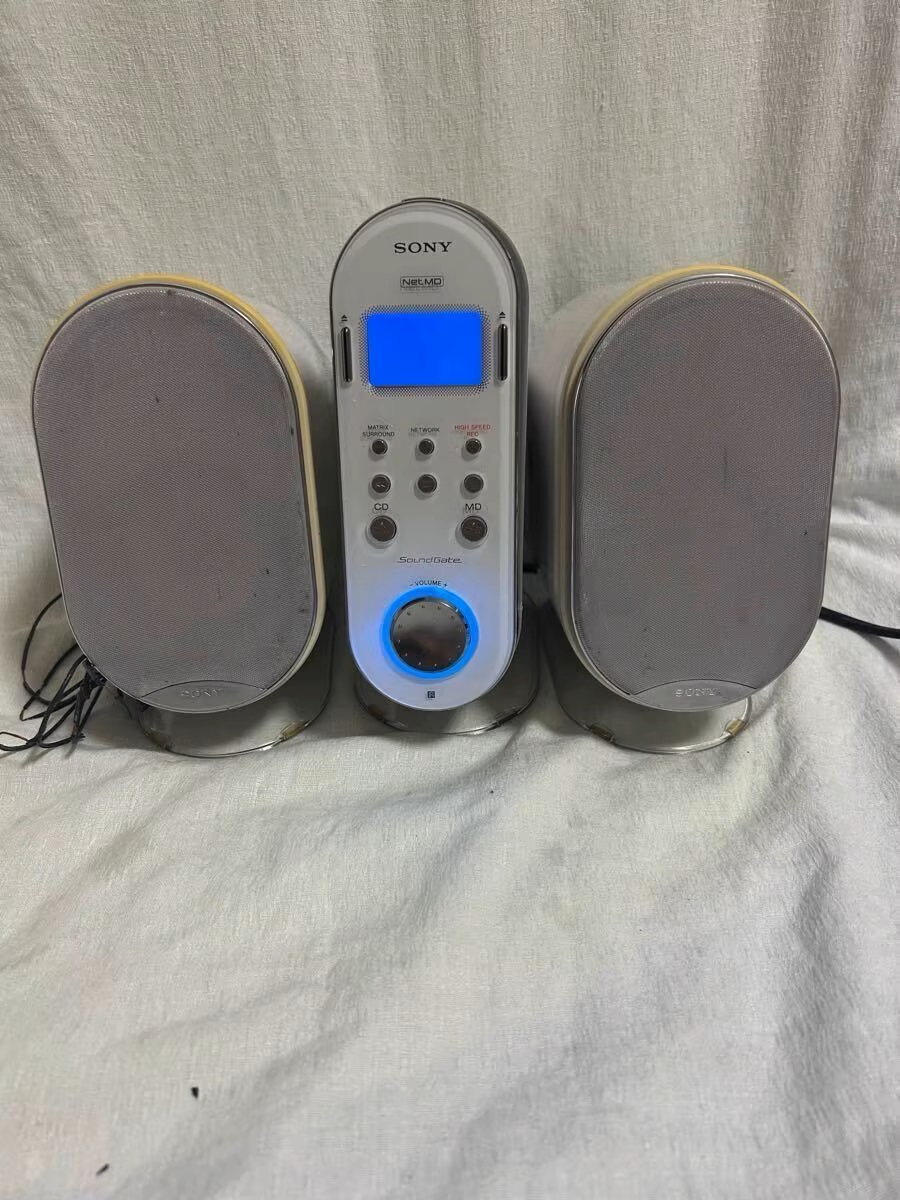 Sony CD/MD combo PC speaker bookshelf system. Works as PC speakers over USB, and will also work as a netMD recorder after switching modes. Will work as PC speakers and with Sonicstage on Windows 10.