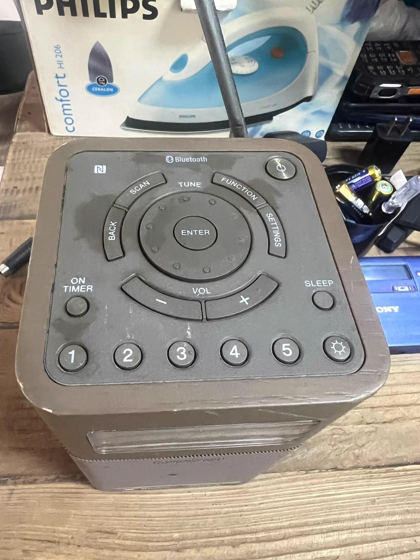 The Sony Portable Clock Radio comes with a built-in FM/AM tuner for listening to your favorite radio stations. You can extend the antenna for FM radio reception. Using the Bluetooth connection, you can listen to music from Bluetooth-enabled devices such as smartphones, tablets, or PCs. In addition, the device also comes with built-in NFC for pairing the radio easily with your NFC-supported smartphone.